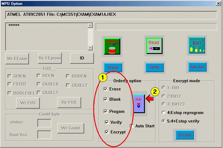 | เมื่อโปรแกรม เริ่มทำงานแล้ว ให้เลือกเบอร์ MPU โดยกดปุ่ม SELECT | |||||||||||